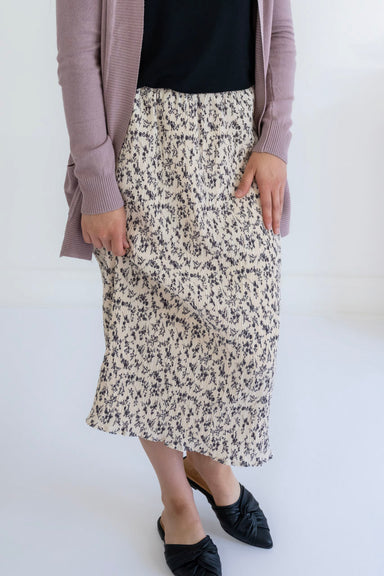 Elevate your wardrobe with the Marynn Crinkle Skirt. This elegant skirt features a delicate floral pattern, an elastic waist pockets - and is fully...