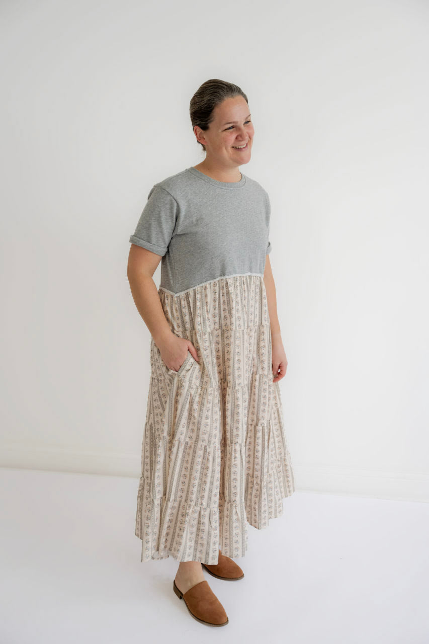 The Astoria Dress blends a soft heathered tee-style bodice with a flowing floral tiered skirt, creating an easy, modest outfit you can throw on and...