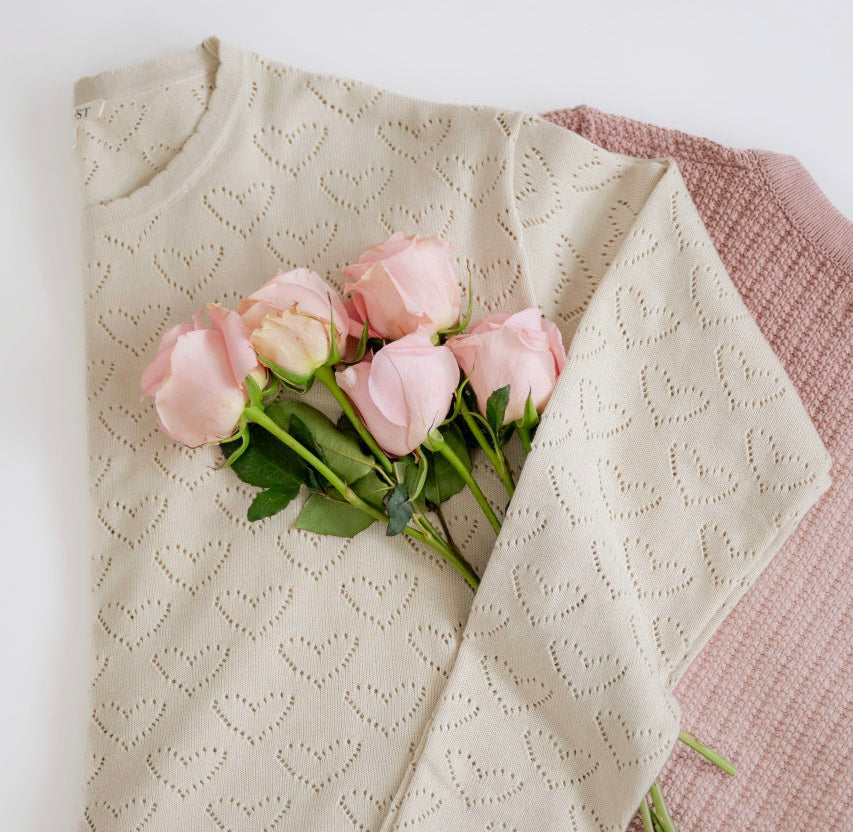 The Cadence Heart Pointelle Sweater in Cream is a sweet, easy-to-wear layer for every day. Soft pointelle hearts and a scalloped neckline add quiet...