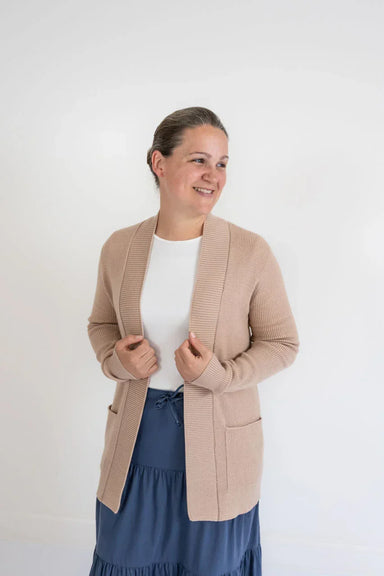 This neutral cardigan is a timeless, feminine layer designed to elevate everyday outfits. Featuring a soft ribbed knit and delicate lace-trimmed he...