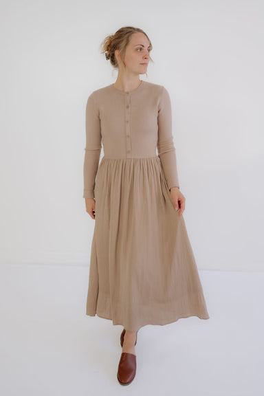 Ainsley Knit Midi Dress in Taupe
