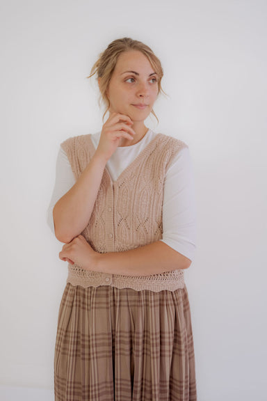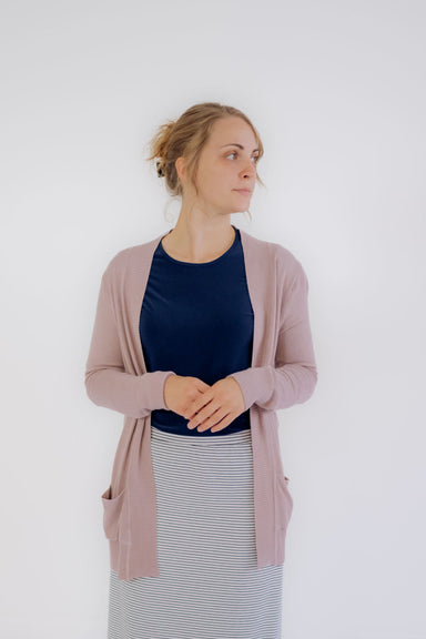 The Anya Pointelle Cardigan in Blush Pink is a soft, sweet layering piece with delicate texture and quietly lovely details. The lightweight open kn...