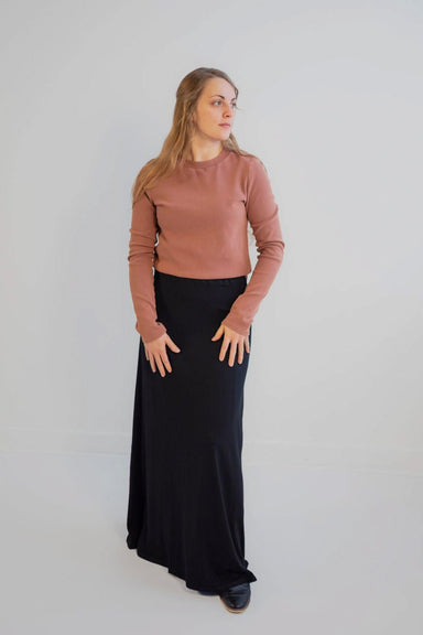 The Benson Ribbed Knit Top in Black is a modest, feminine wardrobe essential you’ll reach for year-round. Crafted in a fine ribbed knit with a clas...