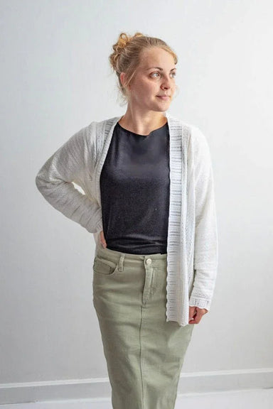 The Della Knit Cardigan is a timeless layering piece featuring soft knit texture, a classic open-front design, and subtle ribbed edges. With its st...