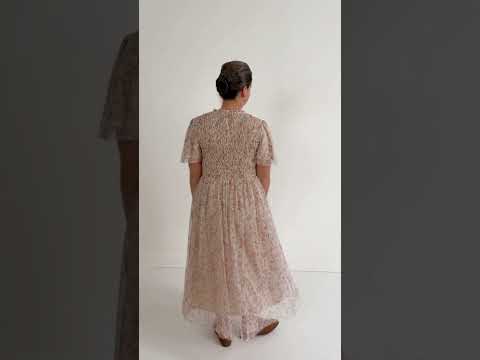 Softly elegant, the Aylin Dress is the true epitome of Spring, featuring a delicate floral design, a subtle ruffle at the neckline, and a beautifully smocked bodice that creates a flattering, comfortable fit. Crafted with amazing quality and attention to detail, this dress is fully lined for a smooth feel and confident coverage. The top layer is made from a light, slightly sheer fabric that drapes gracefully, giving the silhouette a refined finish. Perfect for weddings, garden parties, and special occasions, the Aylin Dress is a timeless piece that feels as elegant as it looks.