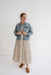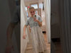 • Color: heather gray bodice with cream and gray floral stripe skirt