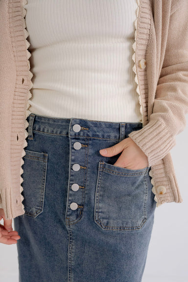 The Camdyn Denim Skirt brings together classic denim styling and a modest midi length you can wear from errands to Sunday mornings. Soft denim with...
